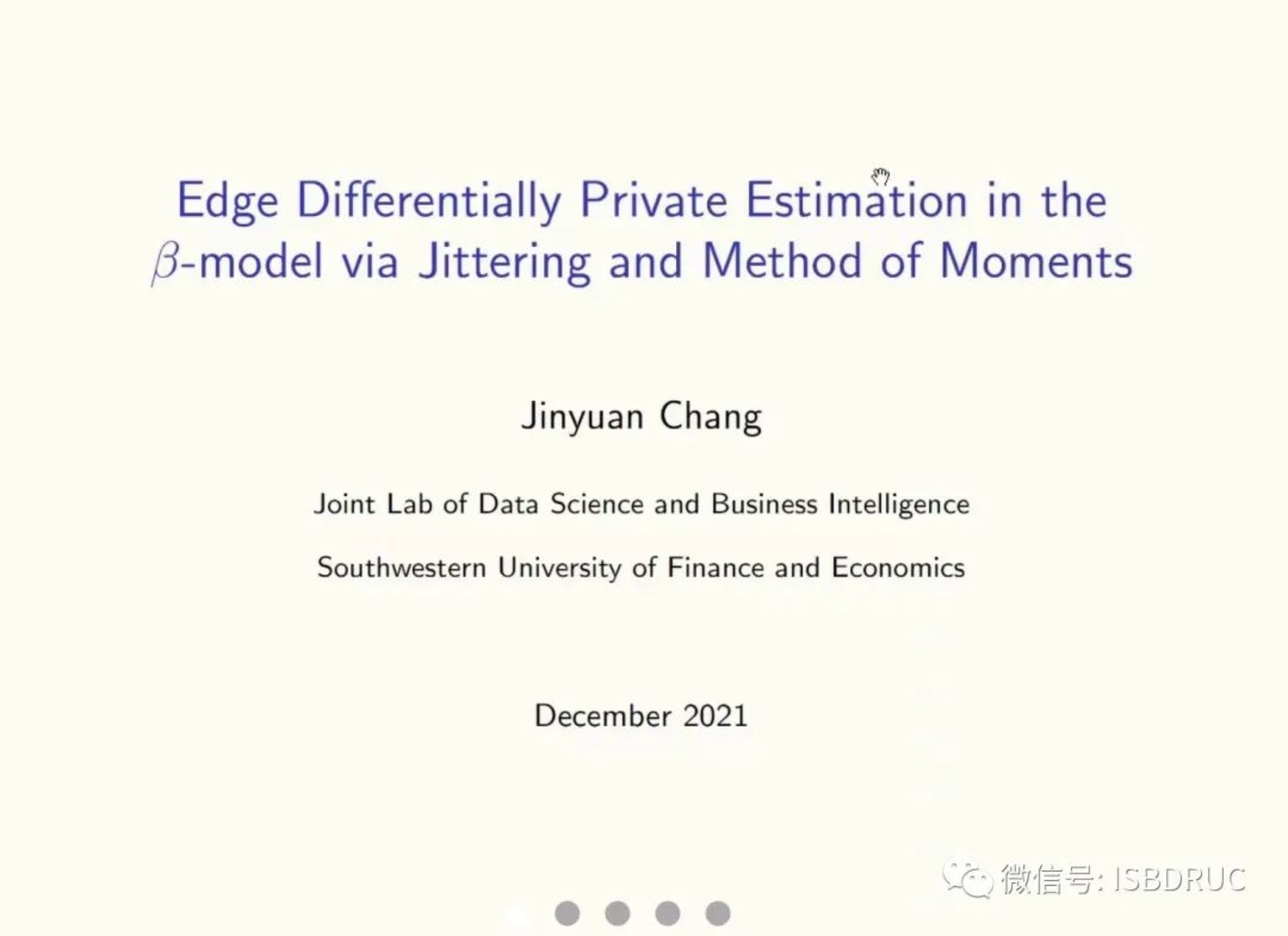 2022年1月18日,西南财经大学常晋源教授应我院邀请进行了以“ Edge Differentially Private Estimation in the β-model via Jittering and Method of Moments ”为主题的最新吃瓜讲座 。