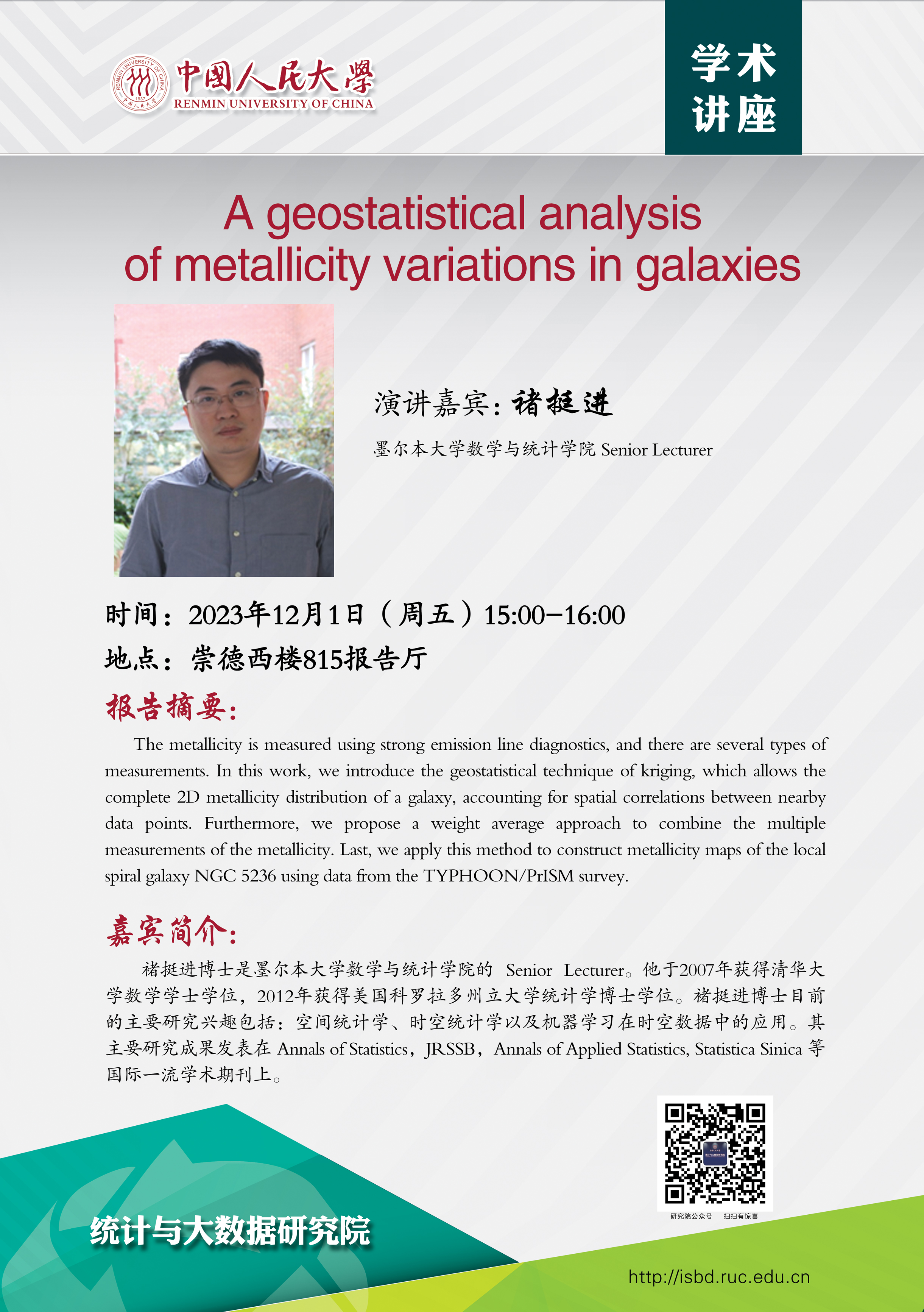 预告:我院将邀请墨尔本大学数学与统计学院Senior Lecturer褚挺进到院讲座