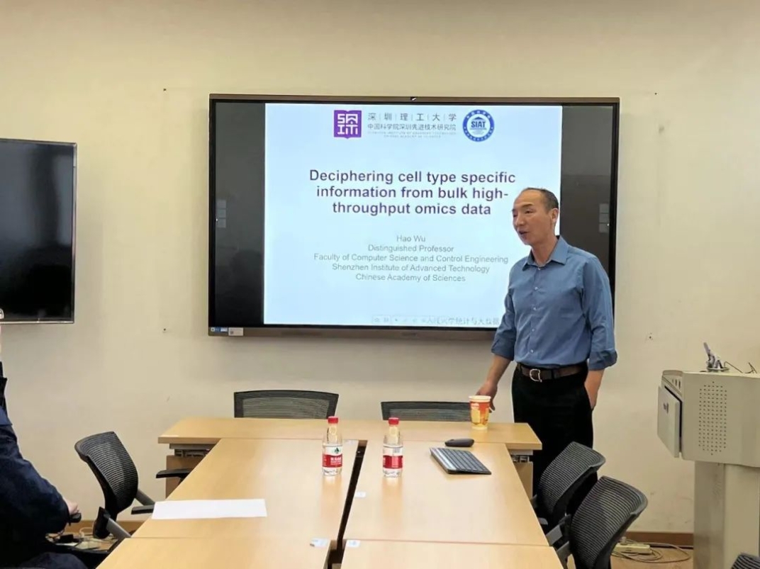 上午10:00-11:00,中国科学院深圳先进技术研究院特聘教授吴浩在崇德西楼702会议室进行了主题为“Deciphering cell type specific information from bulk omics data”的讲座。