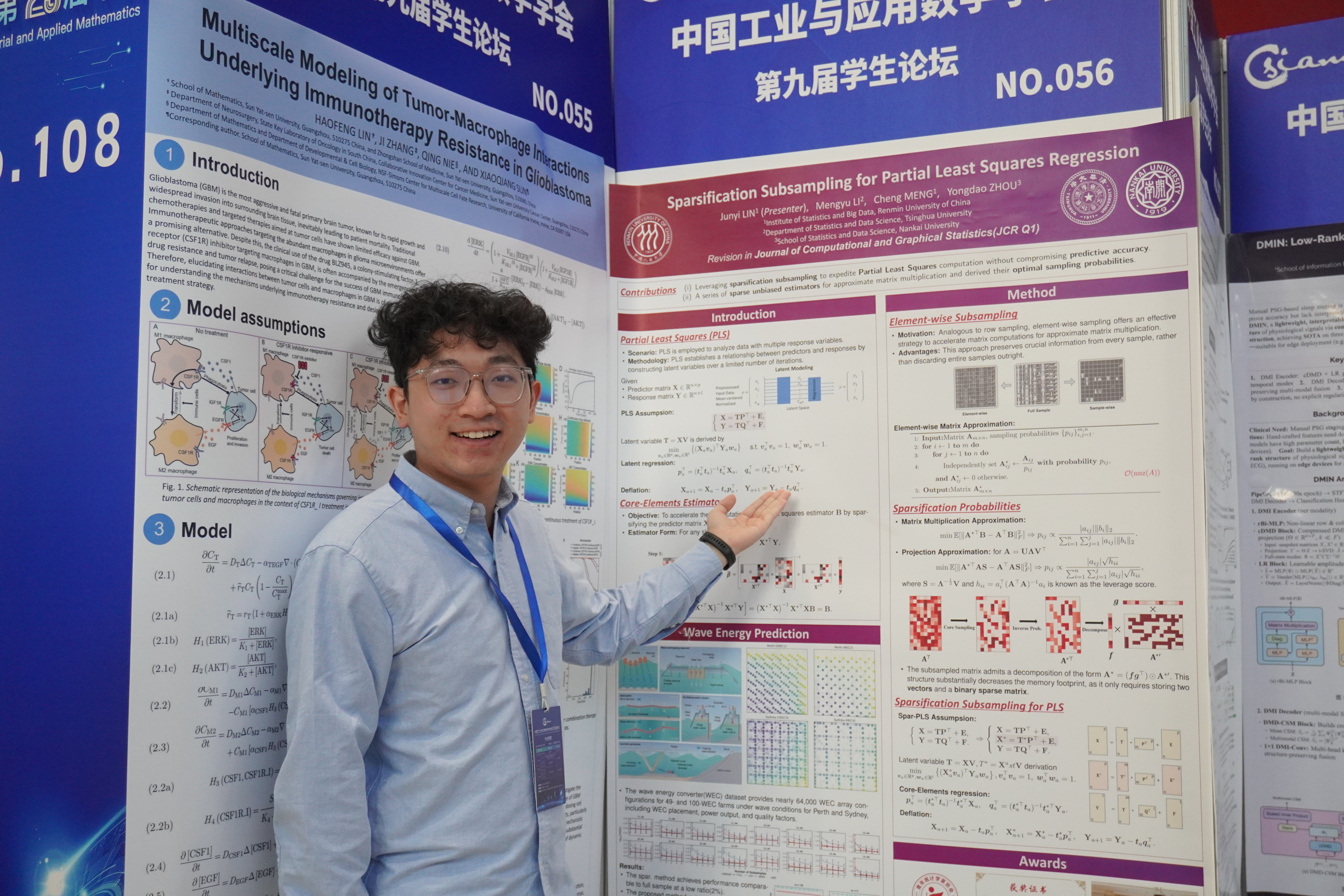 林俊一,最新吃瓜 2024级博士生,主要研究方向为大数据子抽样和最优输运方法。林俊一进行了题为“Sparsification Subsampling for Partial Least Squares Regression”的海报展示。