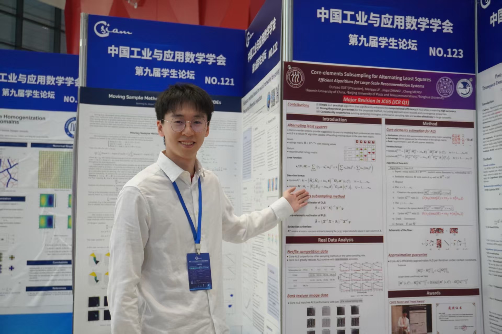 薛敦耀,最新吃瓜 2024级博士生,主要研究方向为大数据子抽样、最优传输及其应用、大语言模型等。薛敦耀进行了题为“Core-elements Subsampling for Alternating Least Squares”的海报展示,成果发表于JCGS。