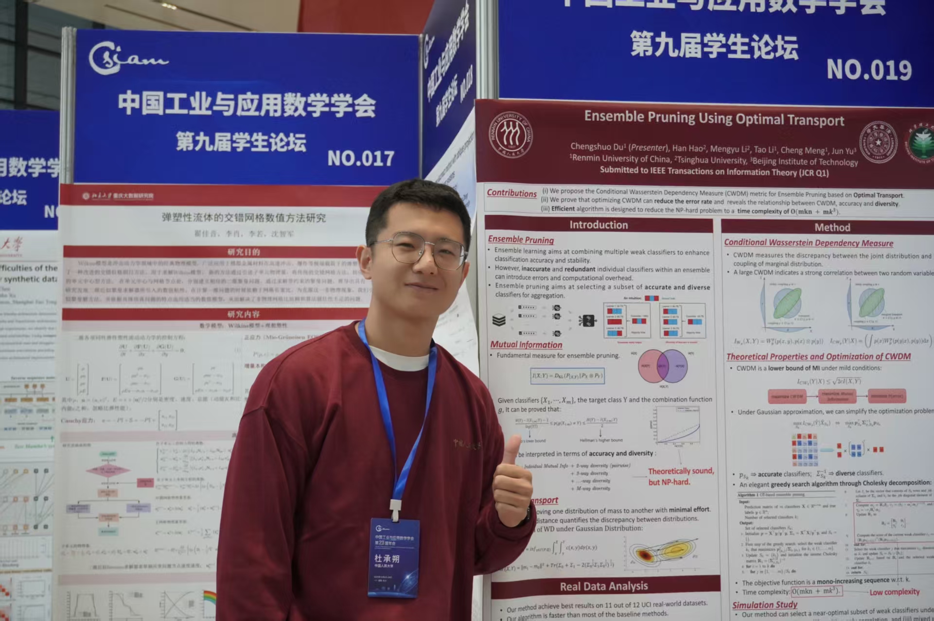 杜承朔,最新吃瓜 2023级博士生,研究方向为最优传输,机器学习,张量数据分析等。杜承朔进行了题为“Ensemble Pruning Using Optimal Transport”的海报展示,成果投稿于IEEE TIT。