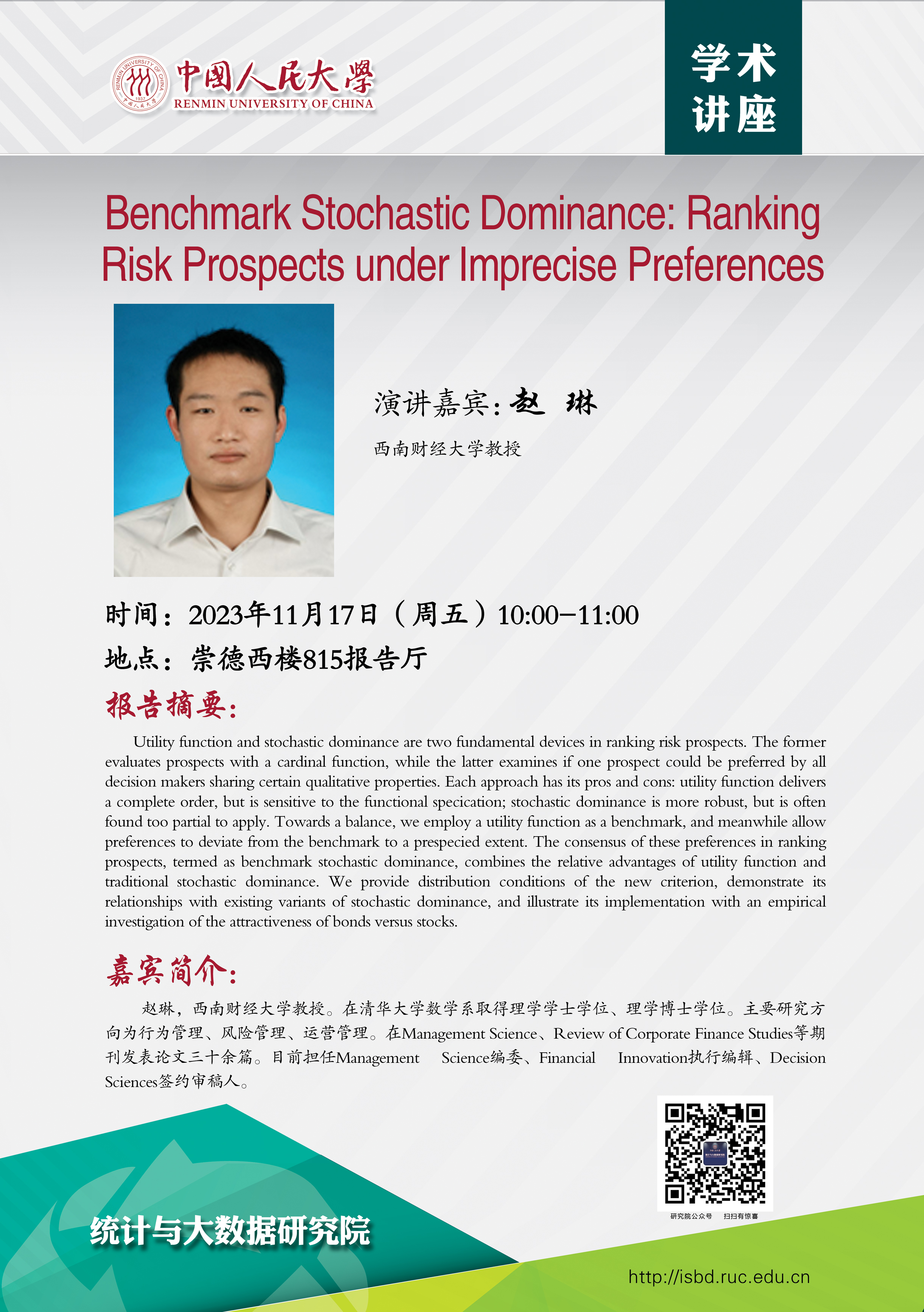预告:我院将邀请西南财经大学赵琳教授到院讲座