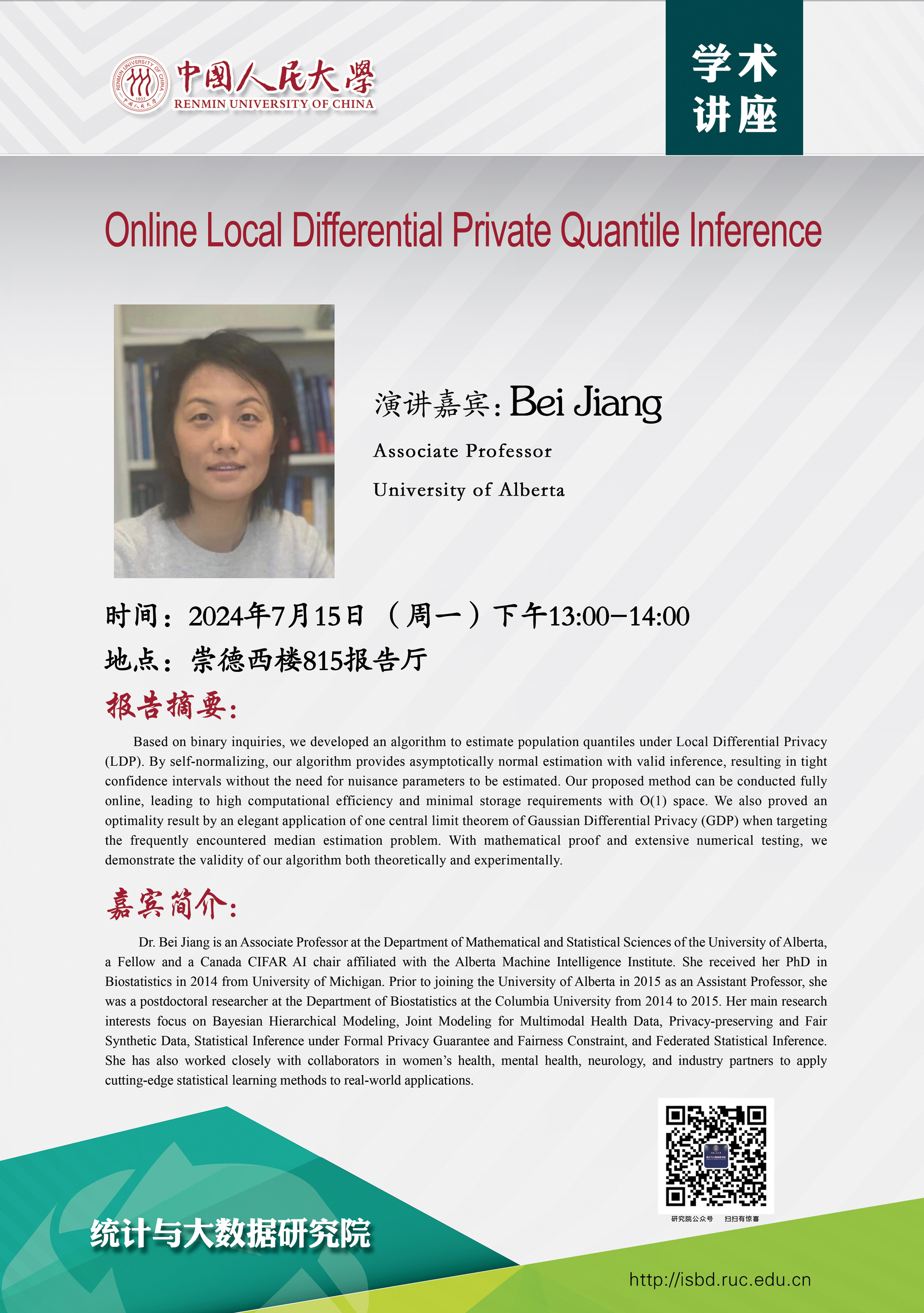 预告:我院将邀请阿尔伯塔大学副教授Bei Jiang到院讲座
