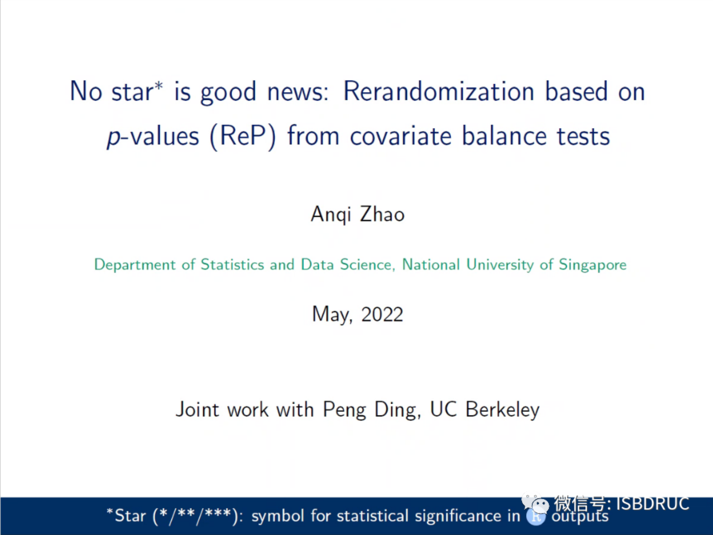2022年5月6日,新加坡国立大学助理教授赵安琪应我院邀请进行了以“No star is good news: a unified look at rerandomization based on p-values from covariate balance tests”为主题的最新吃瓜讲座 。