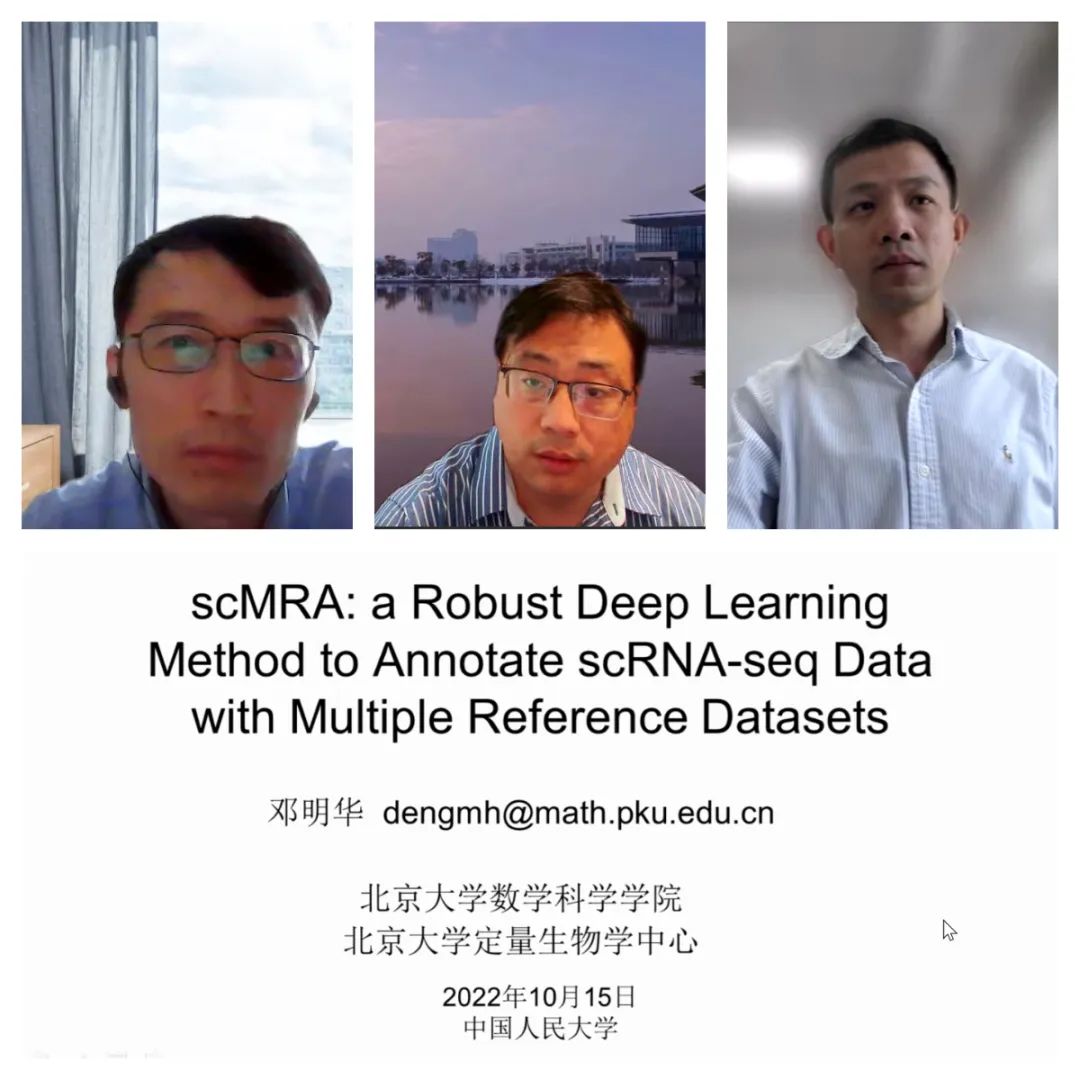 下午13:30邀请报告环节开始,由最新吃瓜 统计学院教授杨翰方、最新吃瓜 副教授李赛主持。北京大学公共卫生学院与数学科学学院邓明华教授进行了以《scMRA: A robust deep learning method to annotate scRNA-seq data with multiple reference datasets》为题的学术报告。南京医科大学公共卫生学院赵杨教授带来了以《基于医学大数据产生高水平医学证据》为题的报告。华中科技大学公共卫生学院王超龙教授介绍了《线粒体拷贝数变异与卒中的关系》。复旦大学公共卫生学院秦国友教授进行了以《Subgroup analysis for longitudinal data based on a partial linear varying coefficient model with a change plane》为题的学术报告。