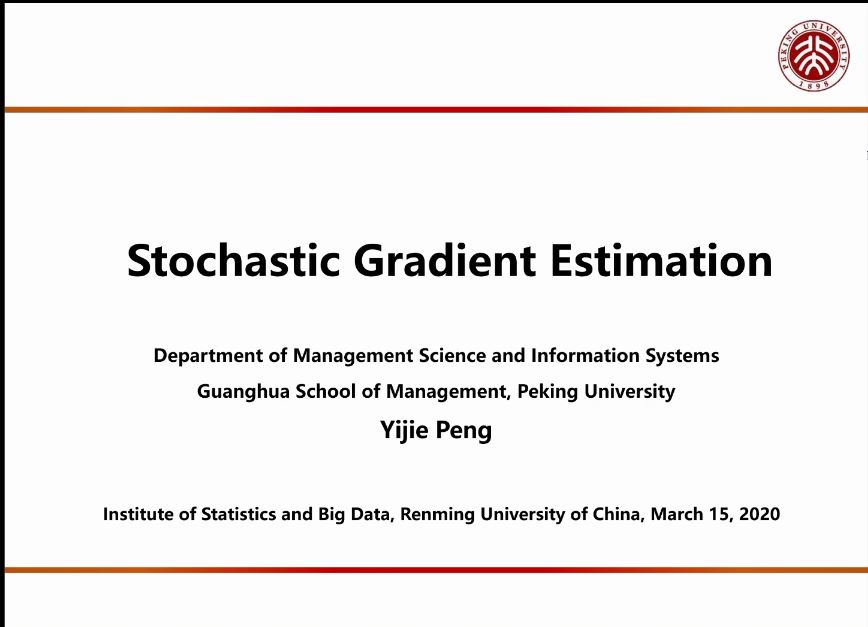 2020年5月15日上午,北京大学光华管理学院管理科学与信息系统系彭一杰助理教授应我院邀请在线进行了以“Stochastic Gradient Estimation”为主题的报告会。