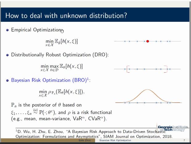 2020年10月30日上午,美国佐治亚理工学院工业与系统工程学院Enlu Zhou副教授应我院邀请在线进行了以“Bayesian Risk Optimization (BRO): A New Approach to Data-driven Stochastic Optimization”为主题的报告会。
