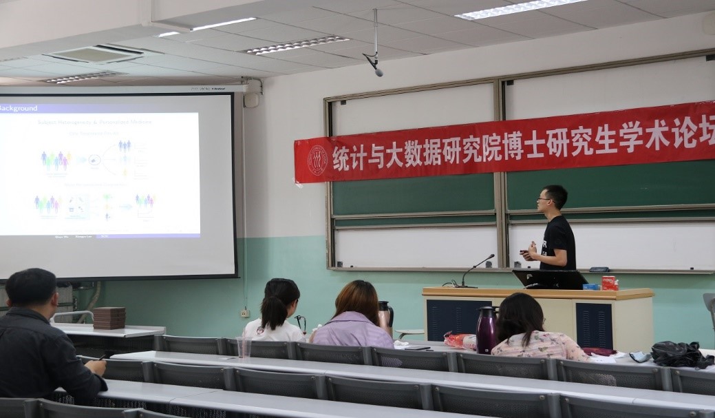 本次论坛共设上下午一天举办,分别在国学馆B113教室、求是楼120教室,10位汇报人分别做了主题演讲,分别是:王庆嵩《Two sample mean test for functional data》;康欣《Generalized Functional Principal Component Analysis via Variational Inference》;叶晗轩《Distributed Dual Averaging for Variational Inference》;樊金麟《Testing Interval correlation》;韩震《Best-scored Random Forest Density Estimation》;吴秋雨《A nonparametric Bayesian approach to simultaneous subject and cell heterogeneity discovery for single cell RNA-seq data》;韩昱《Dynamic Covariance Matrix Estimation using Adaptive Variable/Global Thresholding》;叶小清《Asymptotic Properties of Covariate-adaptive Randomization with K>2》;朱琳《Spatial-temporal analysis of American temperature in 2015》;周方婷《Bayesian double feature allocation with application to compositional data》。
