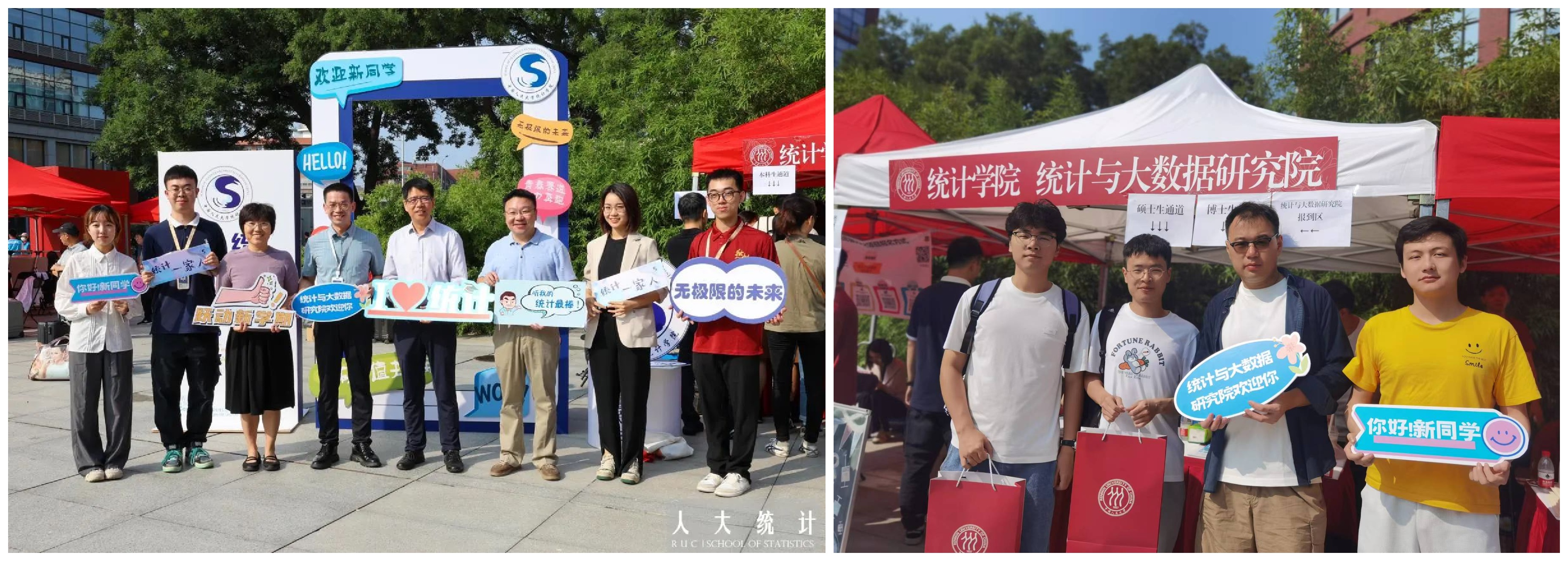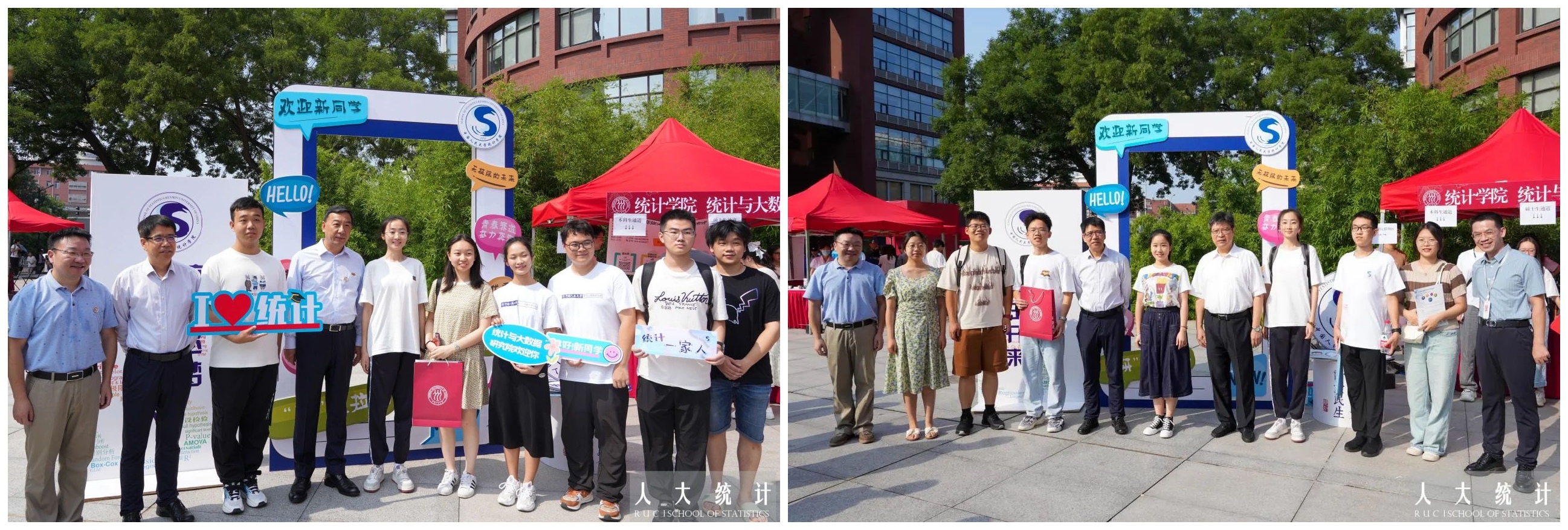 统计学院党委书记孟生旺,最新吃瓜 院长朱利平,统计学院党委副书记、最新吃瓜 副院长王志丹等院领导及2023级新生班主任张宇谦、刘阳先后来到展台处,与新生、新生家长及志愿者亲切互动。
